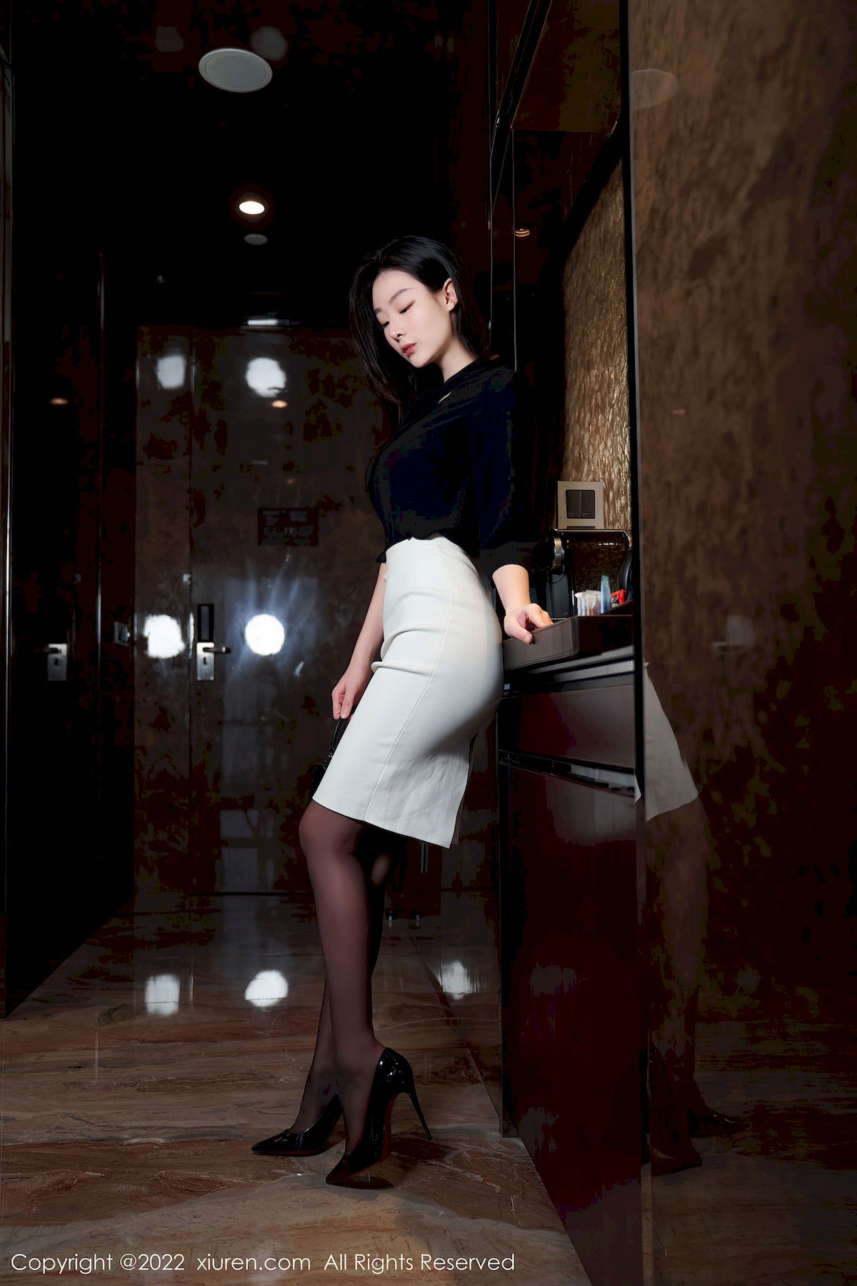 [秀人XiuRen] No.5790 女神王馨瑶 - 蓝色上衣+简约白
